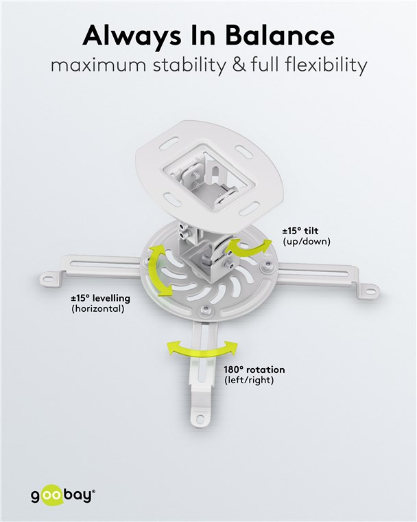 Die moderne Balance aus Flexibilität und dezenter Optik. Ob für den entspannten Heimkino-Abend zu Hause oder professionelle Präsentationen im Büro, die robuste Deckenhalterung ist überall die zuverlässige Unterstützung für deinen Beamer. Durch flexibles Drehen und Neigen findest du immer den perfekten Blickwinkel, egal in welchem Raum oder in welcher Montagehöhe. Für vollen Fokus aufs Wesentliche.