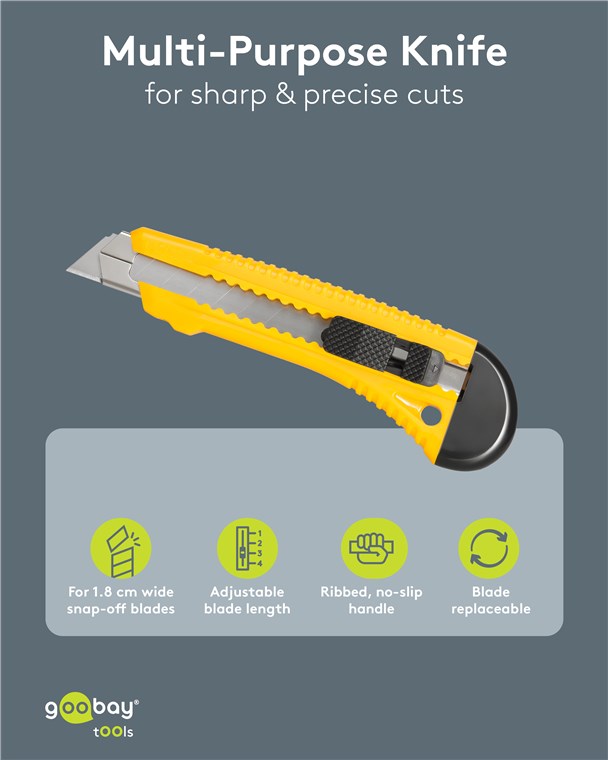 - Stufenweise einstellbarer Klingenaustritt mit einrastender Arretierung für einen festen Halt der Klinge auch bei hoher Belastung - für sicheres Arbeiten ohne Verletzungsrisiko