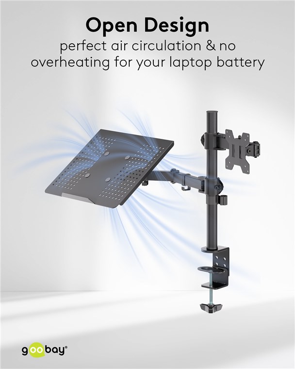 Goodbye, neck pain! Enjoy complete convenience at your desk, in your home office or at work: The flexible workstation puts your laptop and monitor in the right position for relaxed, ergonomic working. The perforated structure of the mounting plate keeps everything cool: optimal ventilation, no heat build-up under the laptop. Simply practical and as flexible as you are.