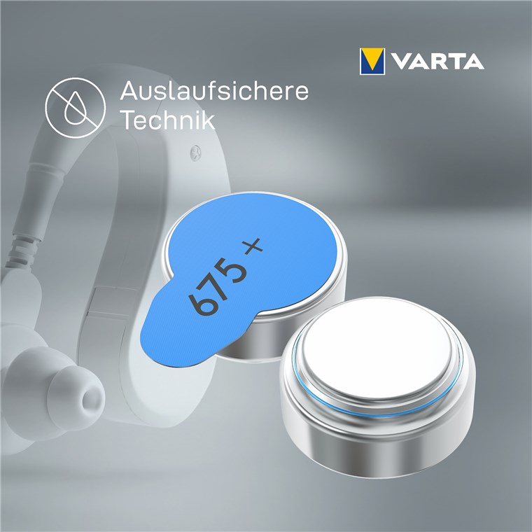 VARTA hearing aid batteries type 675 with zinc-air technology are ideal for modern hearing aids. The powerful batteries stand for a particularly long service life and reliable functionality. For more convenience in everyday life and communication without interruptions or decreasing performance.