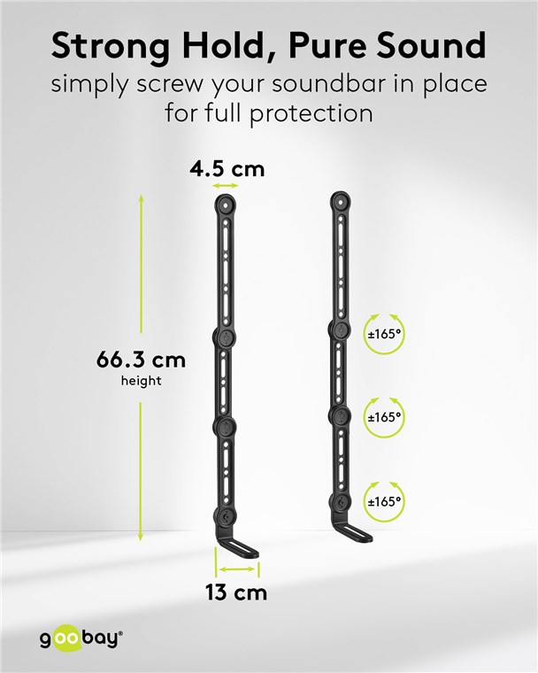 • The width of the soundbar support feet is infinitely adjustable, making them suitable for most soundbars from popular manufacturers such as Samsung, LG, Sonos, Sennheiser, Teufel and JBL