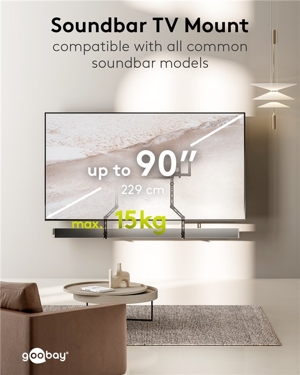 for soundbars weighing up to 15 kg, compatible with televisions up to 90 inches (229 cm)