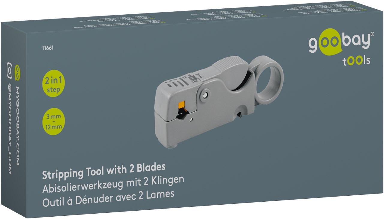 - 2-blade stripper to expose the wire and dielectric/shielding in just one simple step