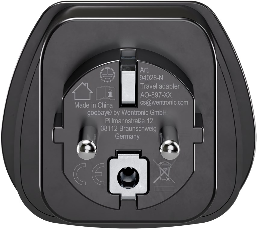 - Thanks to its compact design, the plug adapter can be stored in a space-saving way in your luggage