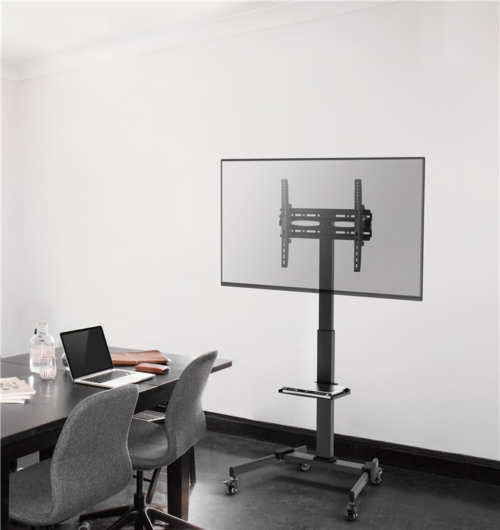 - Mobile TV mount with 4 lockable castors for flexible use in offices, training rooms or reception areas
