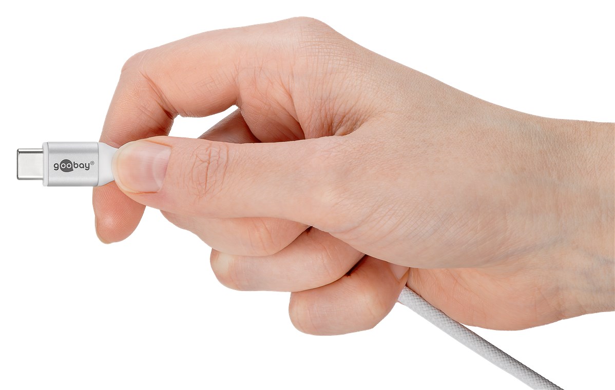 - Robust charging and data cable with a textile-coated silicone sheath for maximum flexibility and efective protection against cable breakage