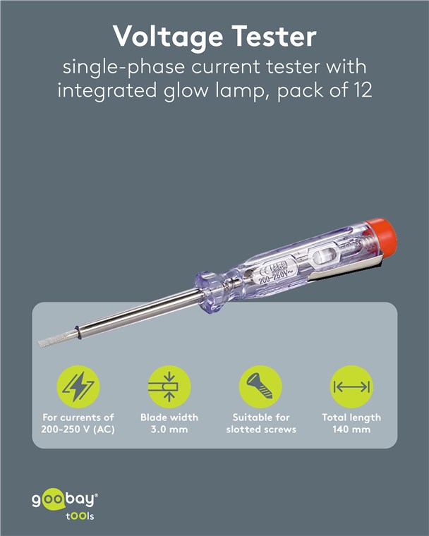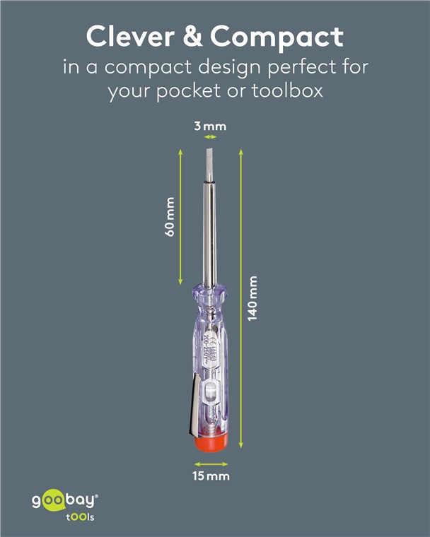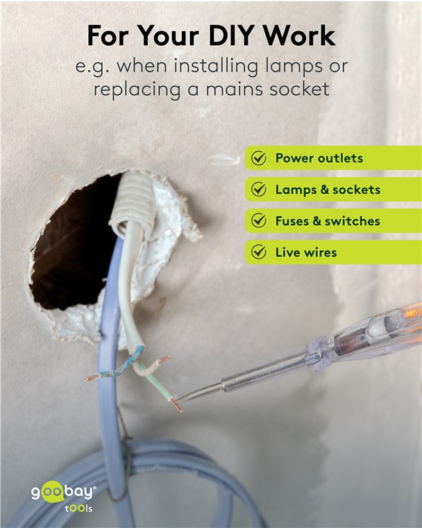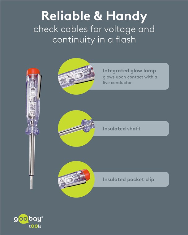 - With integrated glow lamp that lights up when coming into contact with a live conductor