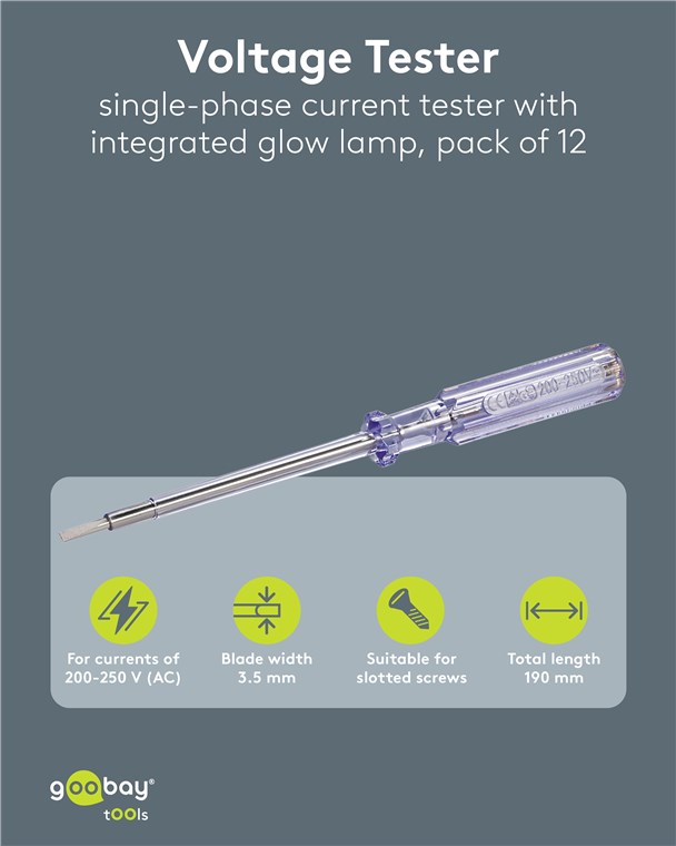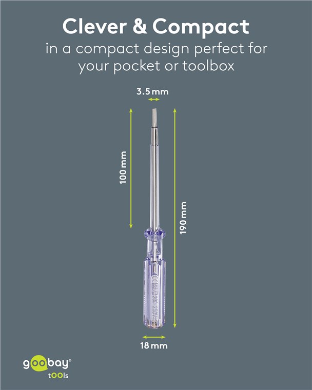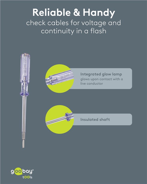 - With integrated glow lamp that lights up when coming into contact with a live conductor