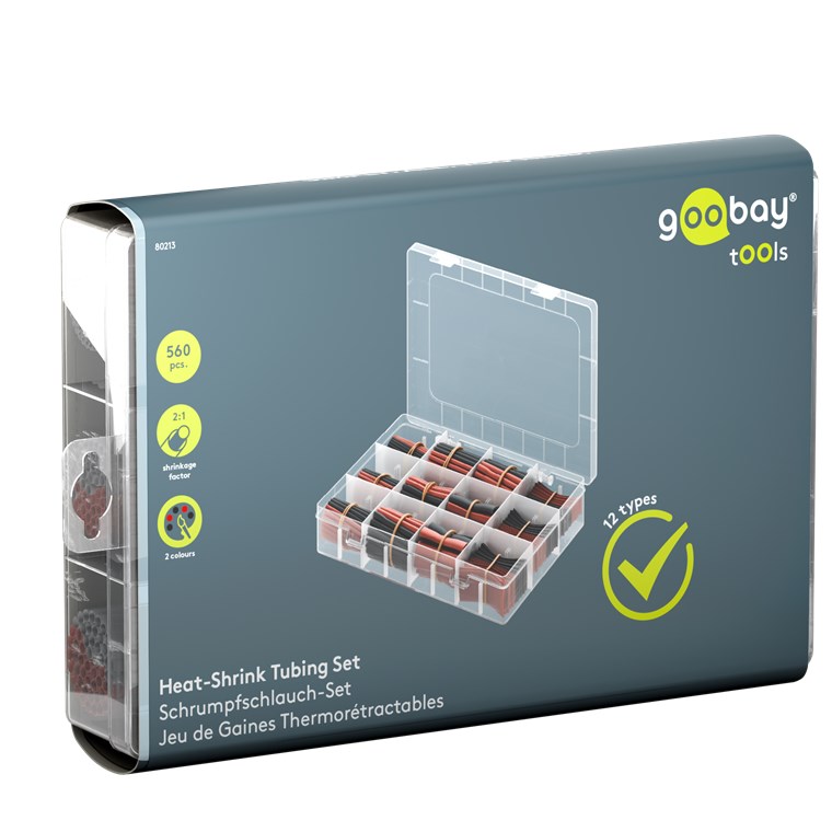 - I tubi termorestringenti in rosso e nero garantiscono un'identificazione univoca, ad es. di positivo/negativo sui cavi elettrici o sinistra/destra sui cavi audio