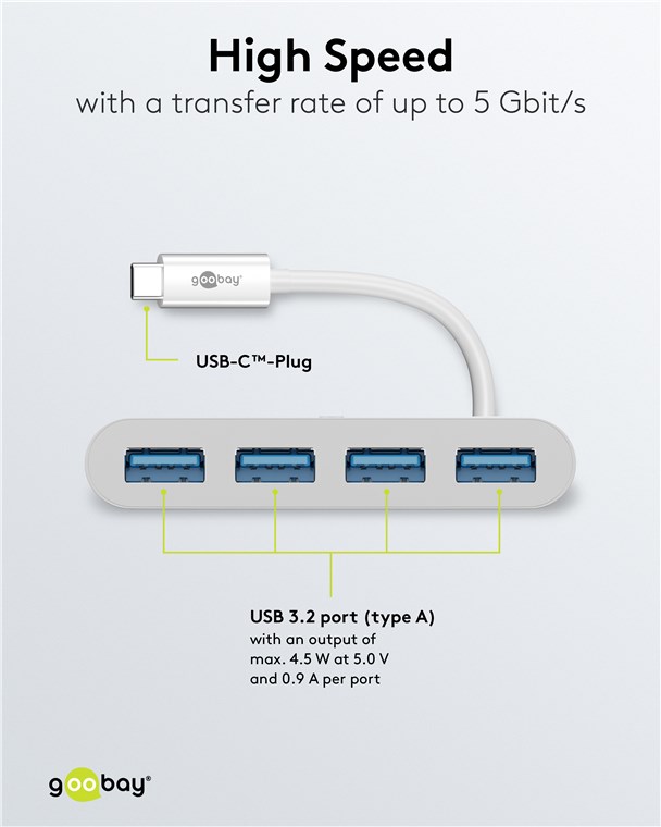 rozszerza port USB-C™ o cztery porty USB-A (USB 3.2)