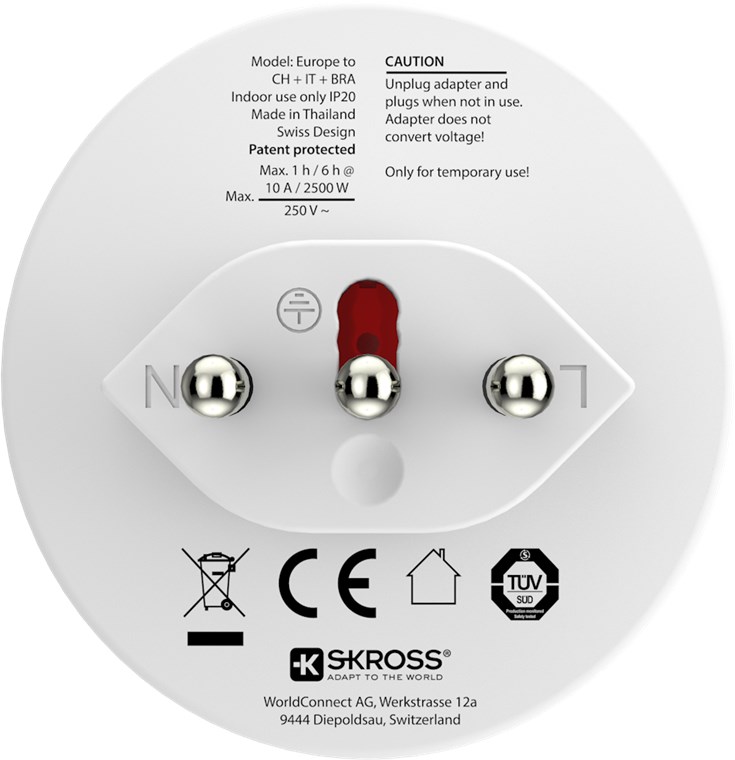 Adapter podróżny z Europy do Szwajcarii, Włoch i Brazylii