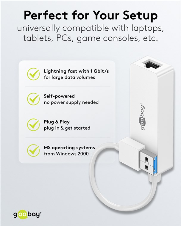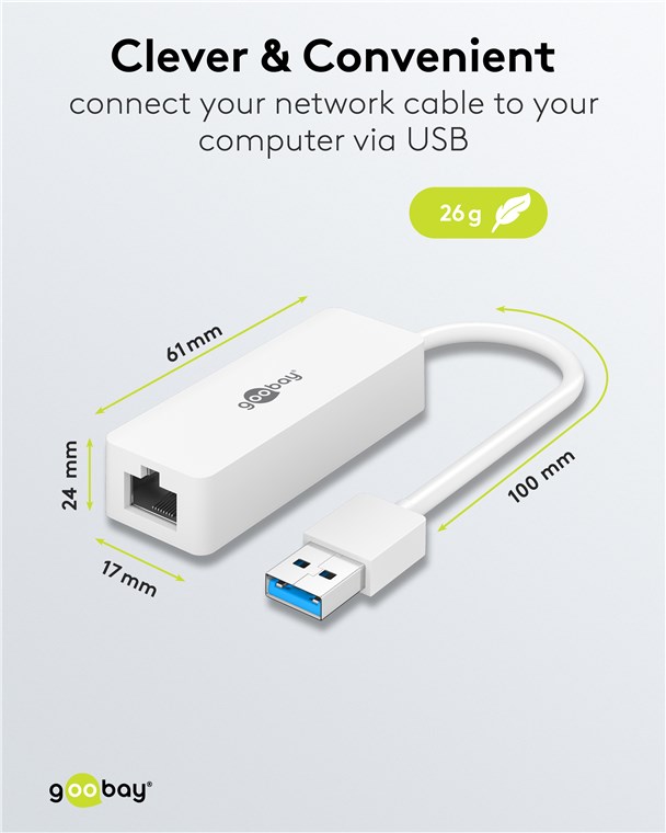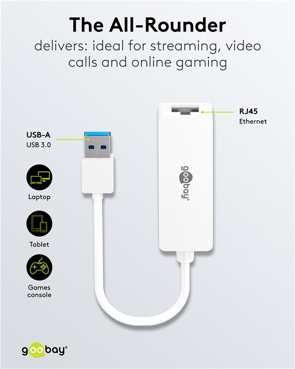 Internet przewodowy jest bardziej wolny od zakłóceń niż WLAN, ale Twój laptop nie ma własnego portu Ethernet? Praktyczny adapter LAN USB umożliwia wygodne podłączenie komputera do istniejącego kabla sieciowego. Do gier online, rozmów wideo i przesyłania strumieniowego z Gigabit Ethernet – bez opóźnień i problemów z połączeniem. Łącz się szybko, przesyłaj strumieniowo bezpiecznie!
