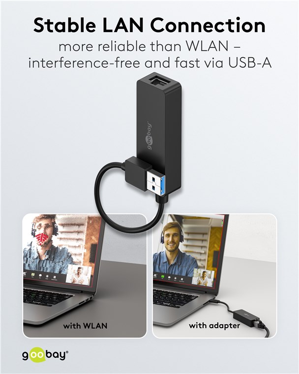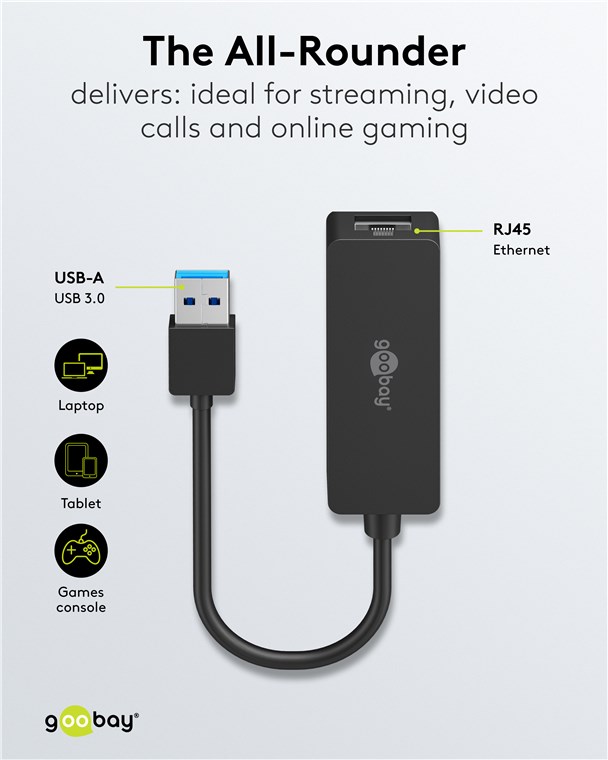 Internet przewodowy jest bardziej wolny od zakłóceń niż WLAN, ale Twój laptop nie ma własnego portu Ethernet? Praktyczny adapter LAN USB umożliwia wygodne podłączenie komputera do istniejącego kabla sieciowego. Do gier online, rozmów wideo i przesyłania strumieniowego z Gigabit Ethernet – bez opóźnień i problemów z połączeniem. Łącz się szybko, przesyłaj strumieniowo bezpiecznie!