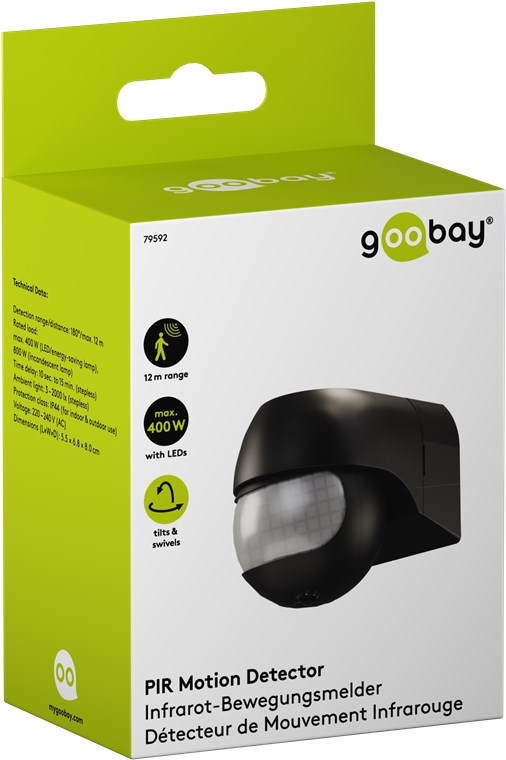 Wiatr i pogoda? Nie ma problemu, czujnik ruchu o stopniu ochrony IP44 idealnie nadaje się do zastosowań zewnętrznych, takich jak ogród, wiata garażowa lub wejścia do domu. Wystarczy podłączyć go do oświetlenia zewnętrznego lub ścieżki, aby uniknąć potknięć o zmierzchu i w ciemności. Czujnik ruchu Goobay – z pewnością dobre samopoczucie.