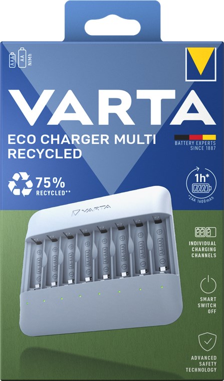 - Najbardziej zrównoważone rozwiązanie VARTA w zakresie ładowania dzięki przyjaznej dla środowiska obudowie wykonanej w 75% z materiałów pochodzących z recyklingu