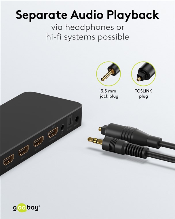 • Gniazdo TOSLINK i 3,5 mm jack umożliwiają oddzielne odtwarzanie dźwięku np. przez system hi-fi, soundbar lub słuchawki