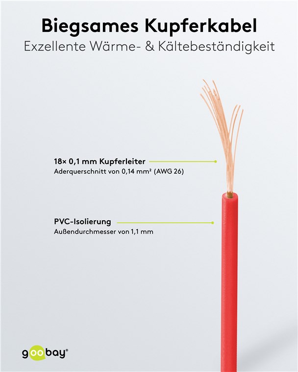 - Jako elastyczna linka w izolacji PVC nadaje się szczególnie do okablowania urządzeń elektrycznych lub zespołów, np. urządzeń gospodarstwa domowego lub przyrządów pomiarowych