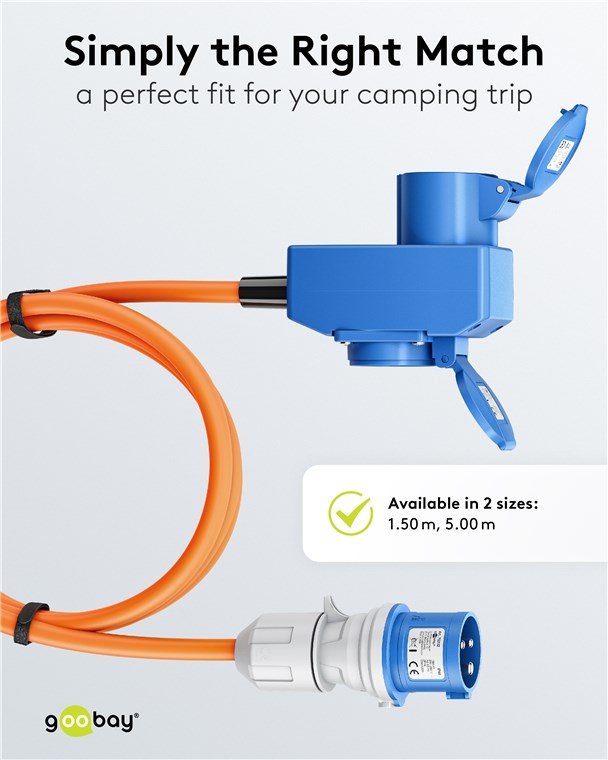 - Podstawowe akcesorium kempingowe: Adapter CEE z gniazdem combi do podłączania kamperów, przyczep kempingowych lub samochodów kempingowych do sieci elektrycznej na kempingu