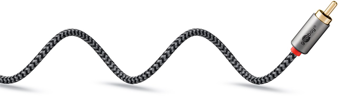 • Wysoce elastyczny kabel RCA klasy premium z wąskimi metalowymi wtyczkami, zabezpieczeniem przed zginaniem i dopasowanym kolorystycznie kablem tekstylnym