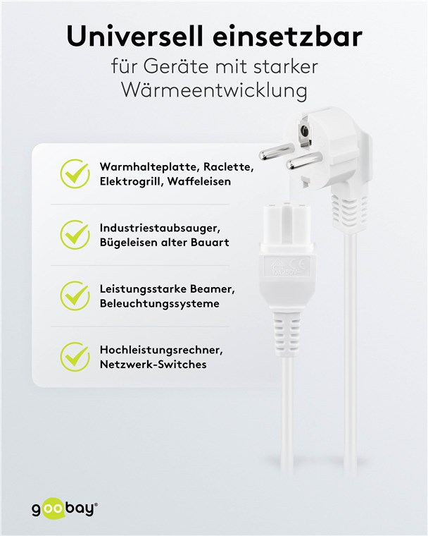 • nadaje się np. do płyt grzejnych, grilli stołowych, żelazek, gofrownic i innych urządzeń z przyłączem do urządzeń gorących (C16)