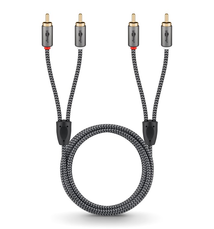 - Wysoce elastyczny kabel RCA klasy premium z wąskimi metalowymi wtyczkami, zabezpieczeniem przed zginaniem i dopasowanym kolorystycznie kablem tekstylnym