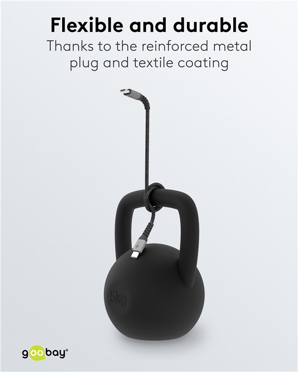 • Pleciona tekstylna powłoka kabla ładującego Goobay Type-C jest przyjemna w dotyku i delikatna dla wrażliwych powierzchni