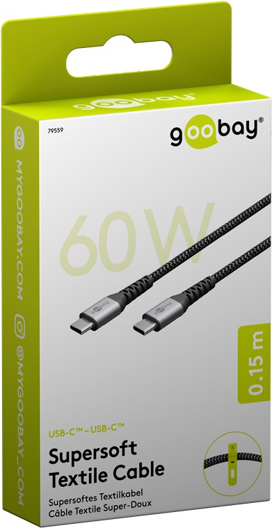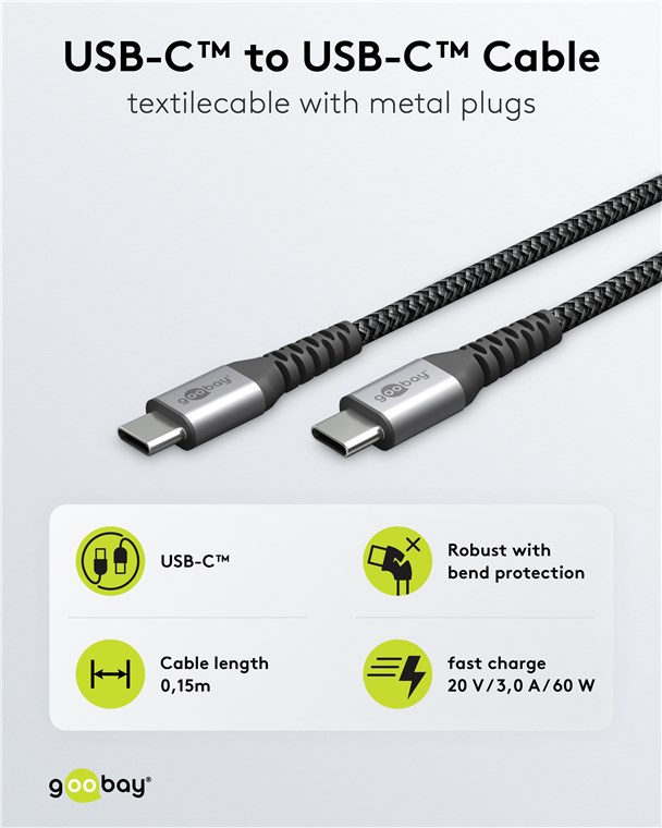• Kabel USB-C™ firmy Goobay do superszybkiego ładowania o mocy 60 W