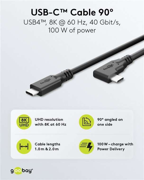 Kabel USB-C™ 90°, USB4™, 1 m, czarny