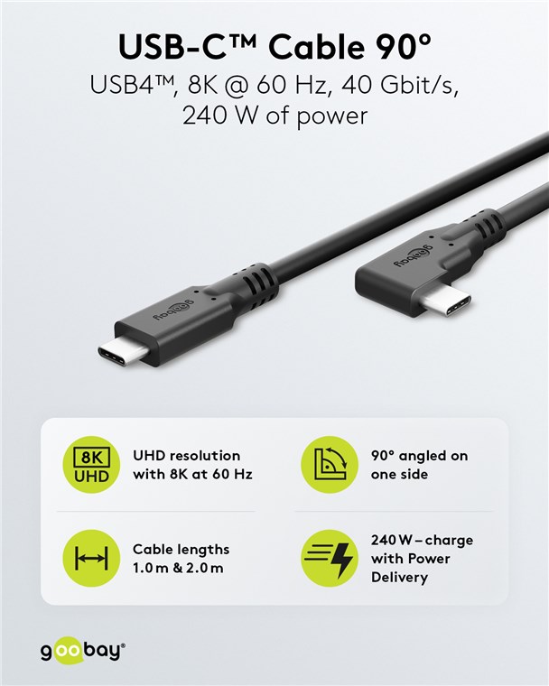 Kabel USB-C™ 90°, USB4™, 2 m, czarny