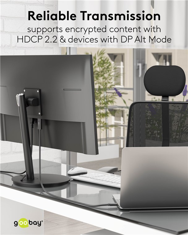 - Dzięki przepustowości do 21,6 Gbit/s, kabel DisplayPort™ zapewnia błyskawiczną transmisję danych, np. do strumieniowania HD ze smartfonów, notebooków, tabletów i innych urządzeń USB-C™