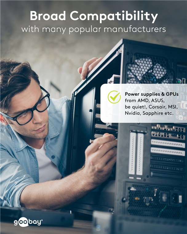 - Kompatybilny ze wszystkimi obecnymi producentami takimi jak Corsair, be quiet!, AMD, ASUS, Gigabyte, MSI, Nvidia czy Sapphire