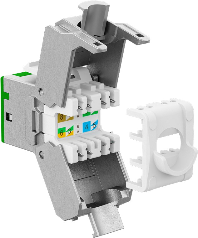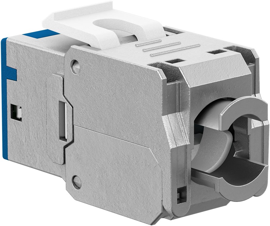 Jeden system, wszystkie złącza: dzięki modułowemu systemowi połączeń Keystone można szybko i elastycznie zainstalować dowolne złącze w pustej obudowie, gniazdku sieciowym lub panelu krosowym. Niezależnie od tego, czy chodzi o RJ45, HDMI™, USB czy antenę satelitarną – dla standardowych portów modułowych (14,9 x 17,0 mm) zawsze dostępne jest odpowiednie złącze Keystone. Prosta instalacja bez użycia narzędzi dzięki praktycznemu mechanizmowi zatrzaskowemu. Dzięki temu zawsze będziesz o krok przed chaosem kabli.