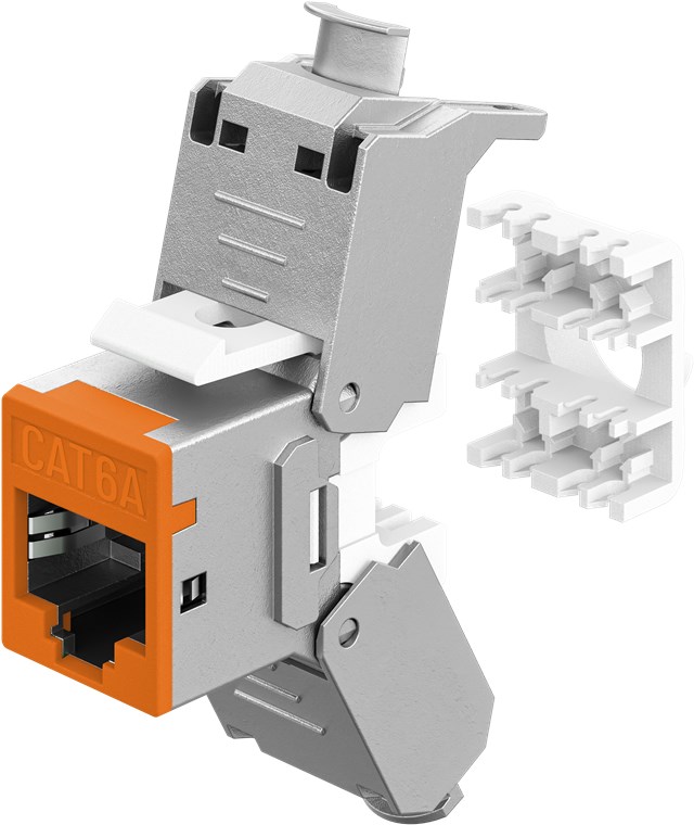 • Moduł Keystone CAT 6A o smukłej konstrukcji i szerokości 14,5 mm do instalacji w panelu krosowym, oszczędzającej miejsce – koniec z problemami z miejscem podczas instalacji kilku modułów obok siebie