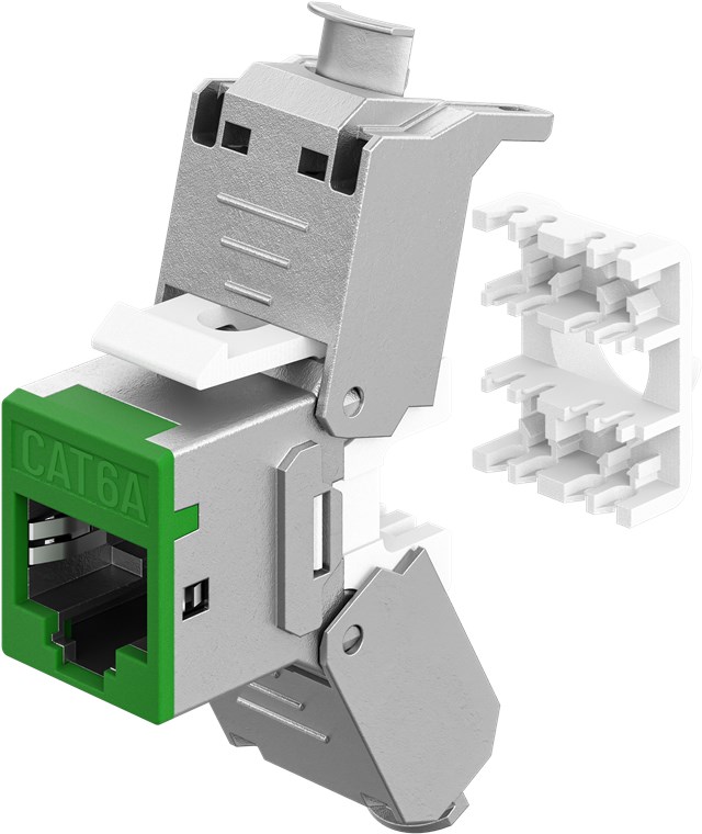 • Moduł Keystone CAT 6A o smukłej konstrukcji i szerokości 14,5 mm do instalacji w panelu krosowym, oszczędzającej miejsce – koniec z problemami z miejscem podczas instalacji kilku modułów obok siebie