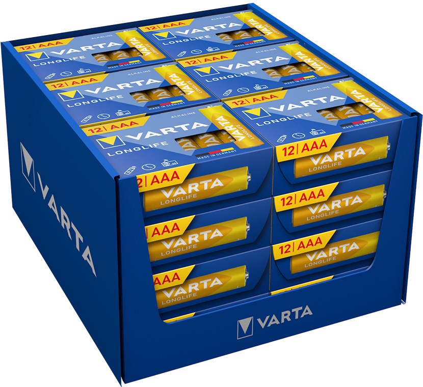 - Nieużywane i zapakowane baterie alkaliczne VARTA AAA pozostają świeże i naładowane nawet przez 10 lat.