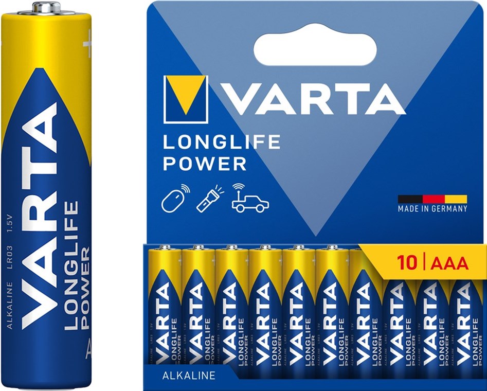 - Nieużywane i zapakowane baterie alkaliczne VARTA AAA pozostają świeże i naładowane nawet przez 10 lat.