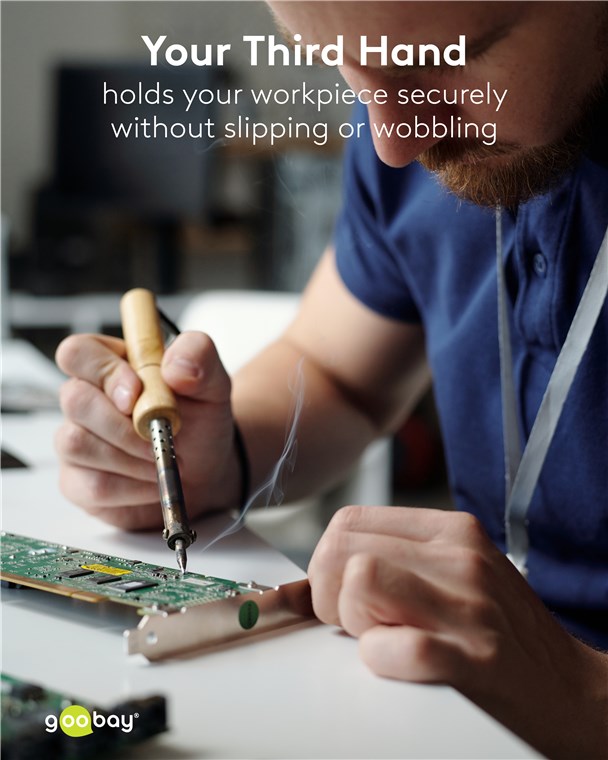 • Szczególnie nadaje się jako pomoc do lutowania małych i lekkich płytek drukowanych, które w inny sposób trudno jest zamocować