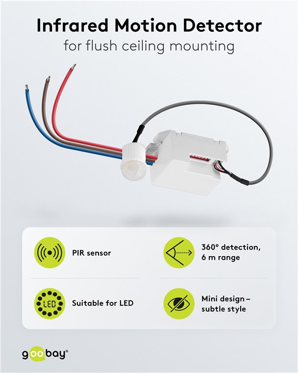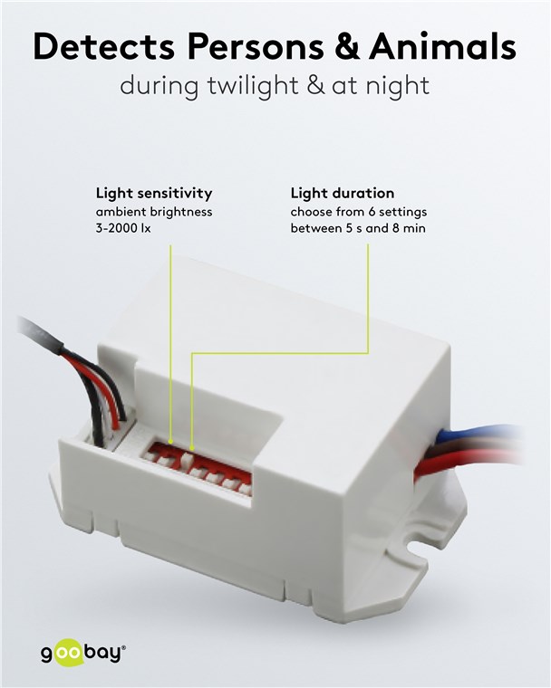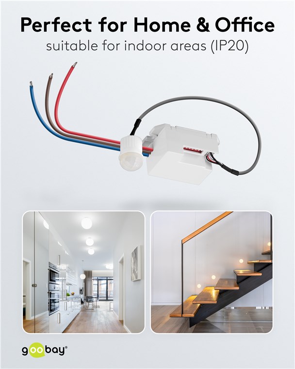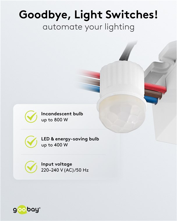 Nigdy więcej ciemności: Czujnik ruchu firmy Goobay zapobiega potknięciom o zmierzchu i w ciemności, zapewniając poczucie bezpieczeństwa nawet w nocy. Idealny do korytarza, łazienki lub przedpokoju – czujnik ruchu zawsze niezawodnie włącza podłączone oświetlenie.