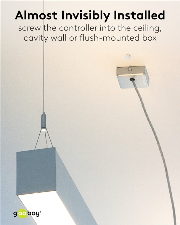 - Z luźnymi końcówkami kabli i dwoma uchwytami mocującymi na jednostce sterującej do łatwego przykręcenia w puszkach podtynkowych, w suficie lub ścianie pustakowej