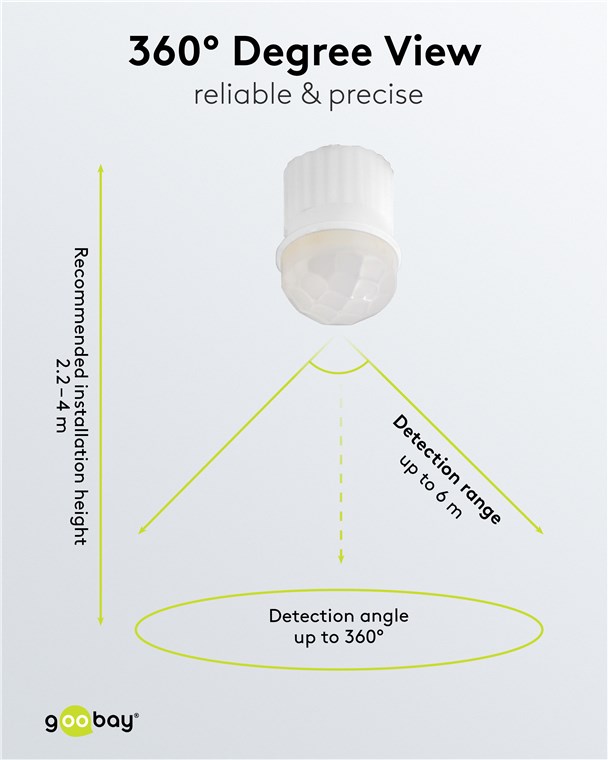 - Dzięki kątowi wykrywania 360° idealny do montażu podtynkowego w sufitach pustych, wysokość montażu: 2,20 m do 4 m