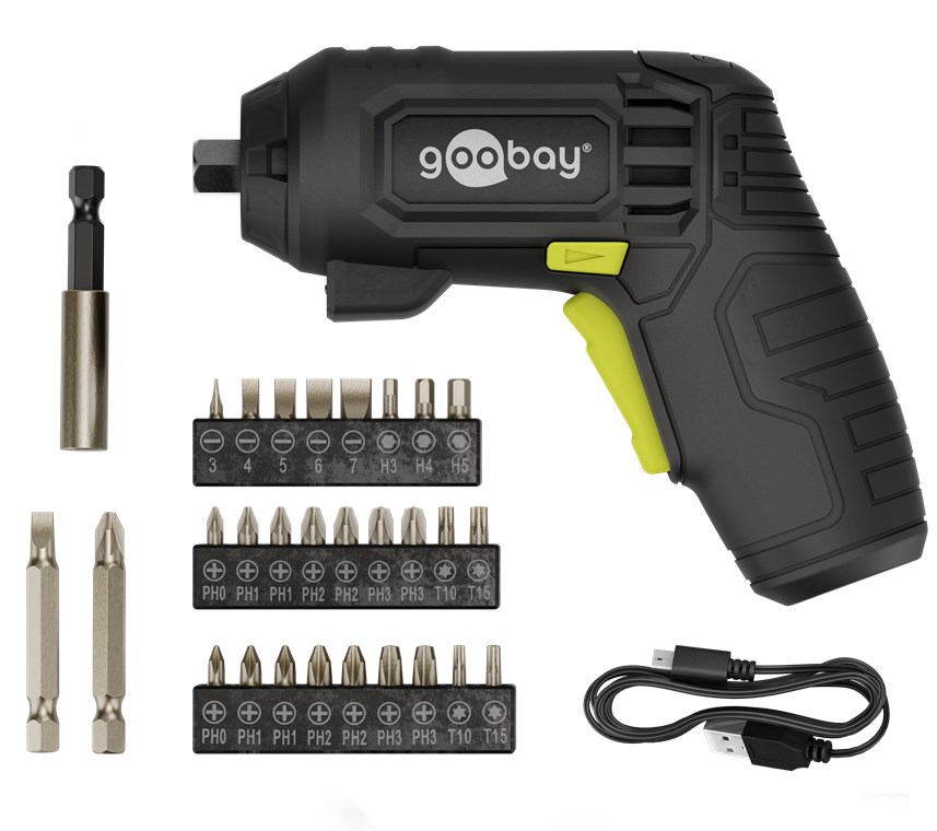 27 bitów, kabel do ładowania USB-C™ na USB-A, przedłużka do bitów, Wkrętarka akumulatorowa |