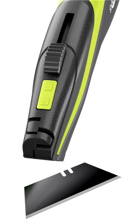 • Po zakończeniu cięcia ostrze automatycznie chowa się w uchwycie – zapewnia to maksymalne bezpieczeństwo pracy w logistyce, magazynie, handlu i rzemiośle