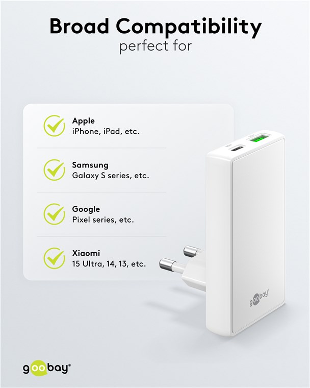- Dzięki dużej mocy 65 W i uniwersalnemu złączu USB-C™ ładowarka zasila praktycznie każde urządzenie, od smartfonów po wysokowydajne notebooki