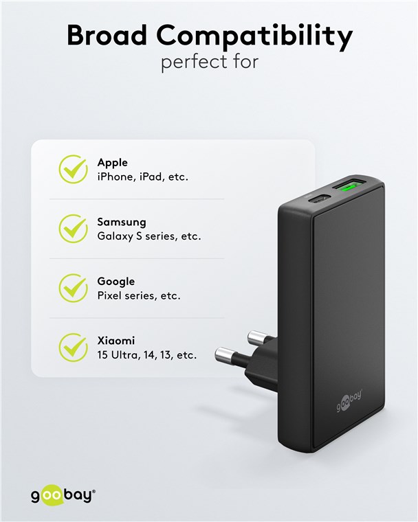 - Dzięki dużej mocy 65 W i uniwersalnemu złączu USB-C™ ładowarka zasila praktycznie każde urządzenie, od smartfonów po wysokowydajne notebooki