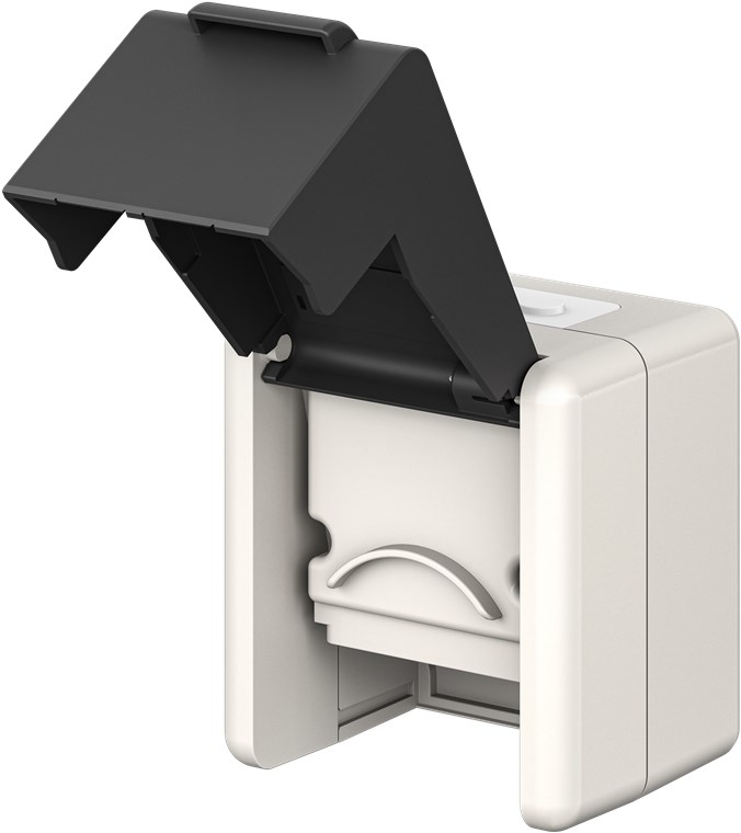 Zawsze gotowy na złe warunki pogodowe: puszkę natynkową o stopniu ochrony IP44 można bez obaw zainstalować we wszystkich pomieszczeniach wilgotnych. Za pomocą zintegrowanych portów Keystone można szybko i łatwo podłączyć wszystkie złącza, od RJ45 po HDMI™, USB lub antenę satelitarną. Szybkie podłączenie, bezpieczna transmisja!