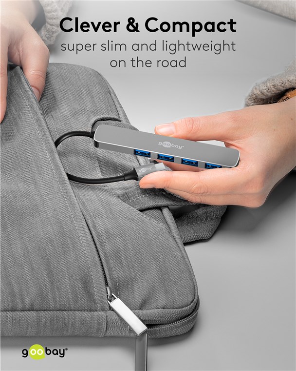 - Dzięki wyjątkowo kompaktowemu i smukłemu formatowi hub mieści się w każdej torbie i jest praktycznym towarzyszem w podróży lub w podróży