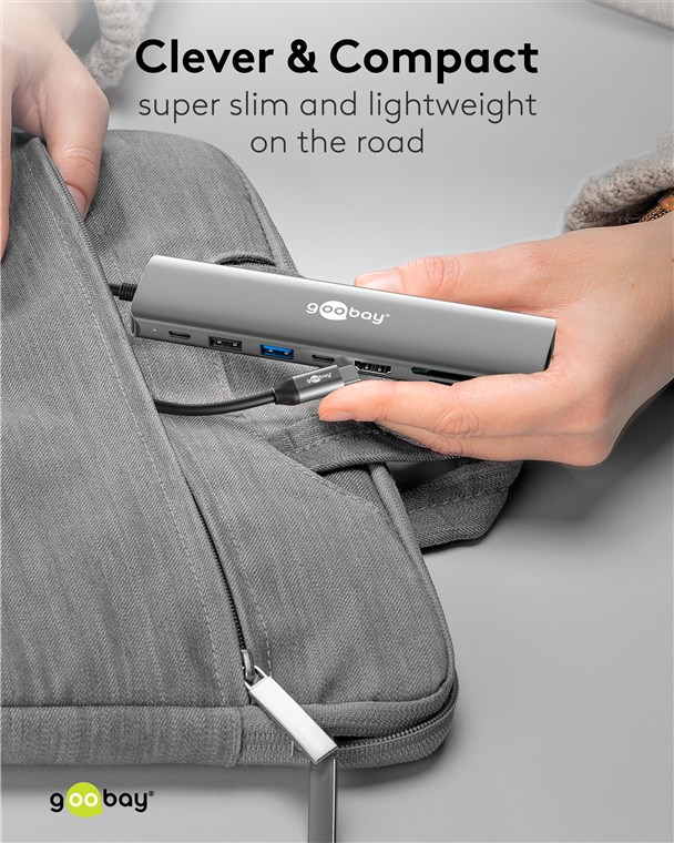 - Dzięki wyjątkowo kompaktowemu i smukłemu formatowi hub mieści się w każdej torbie i jest praktycznym towarzyszem w podróży lub w podróży