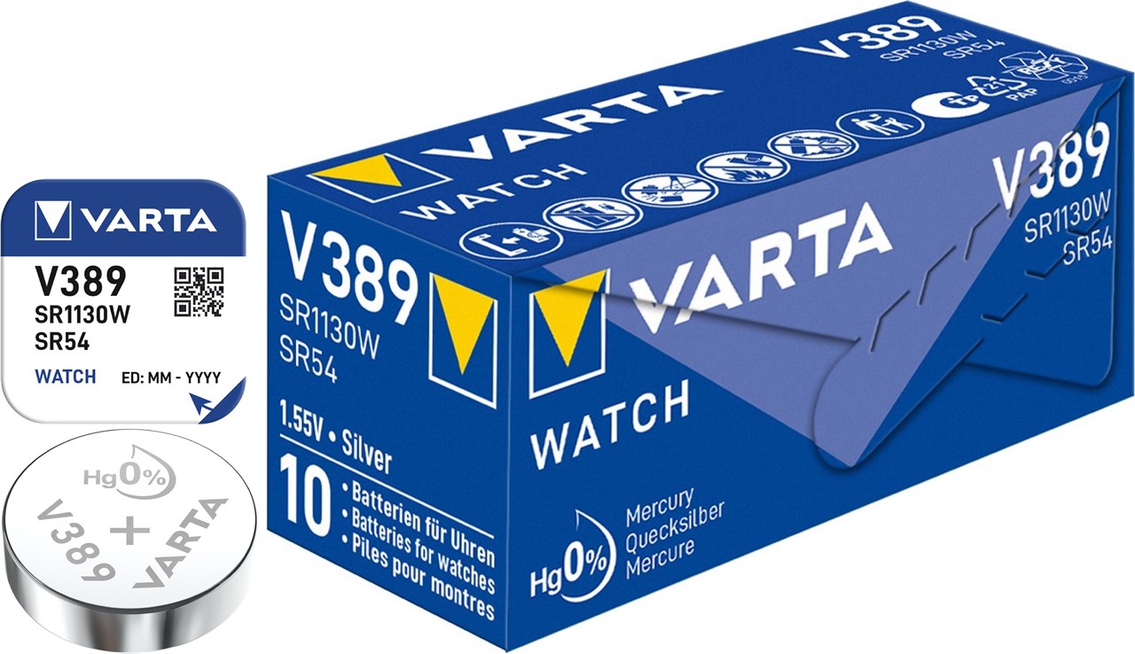 - Baterie guzikowe V389 firmy VARTA oferują stałą moc i są niezawodnym dostawcą energii dla wszystkich zastosowań domowych i domowych
