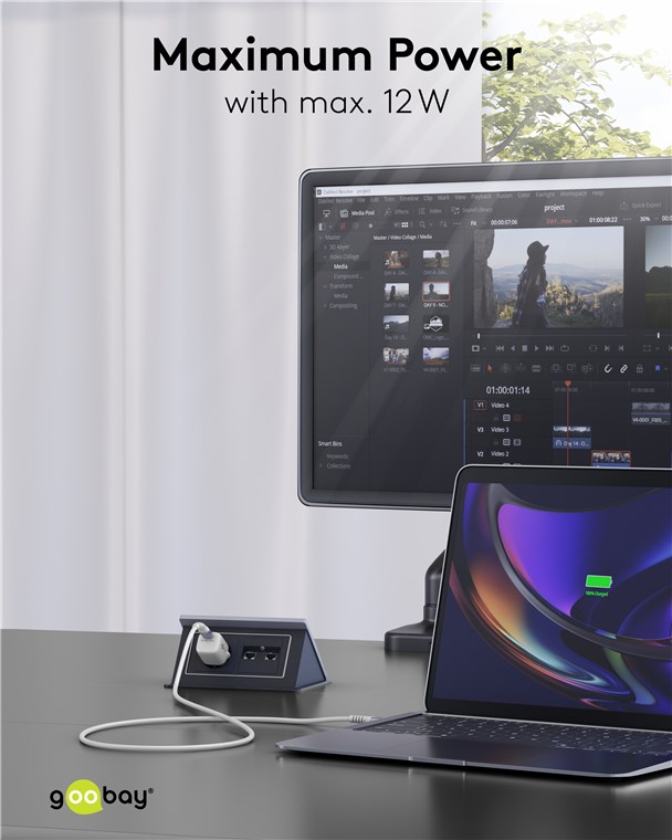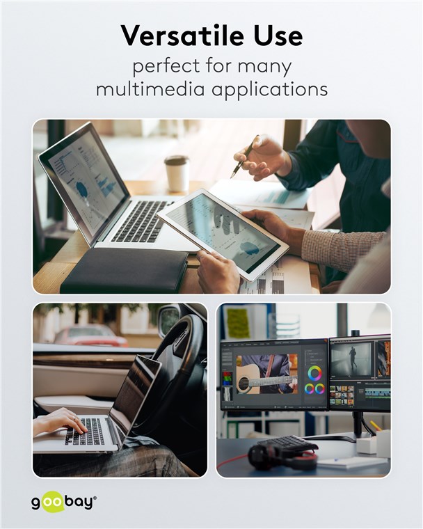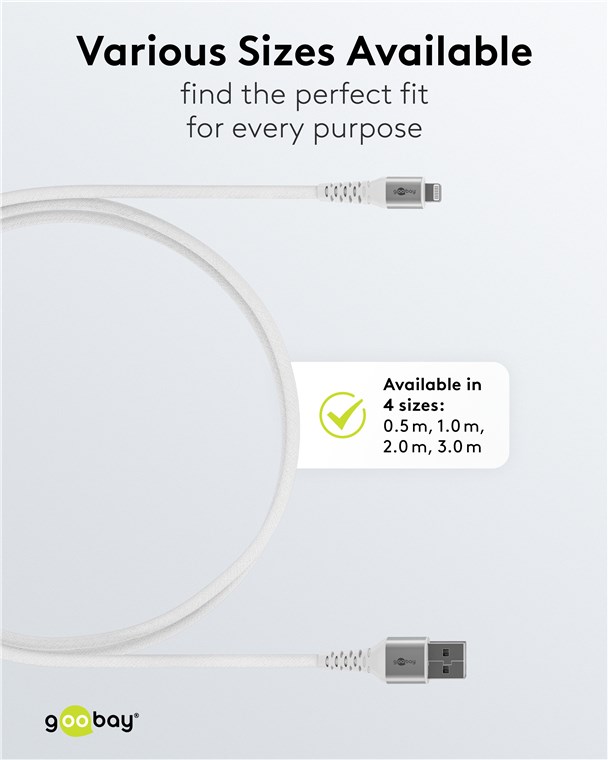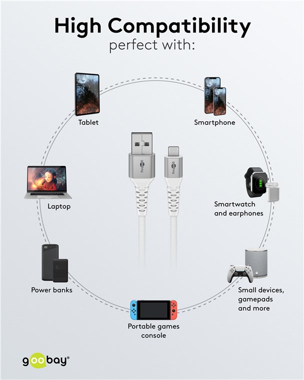 - Pleciona tekstylna powłoka kabla ładującego USB-A firmy Goobay jest przyjemna w dotyku i delikatna dla wrażliwych powierzchni