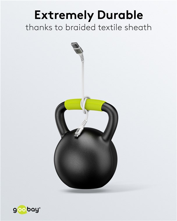 - Wytrzymały kabel do ładowania i transmisji danych z silikonową powłoką tekstylną zapewnia maksymalną elastyczność i absolutną ochronę przed złamaniem kabla